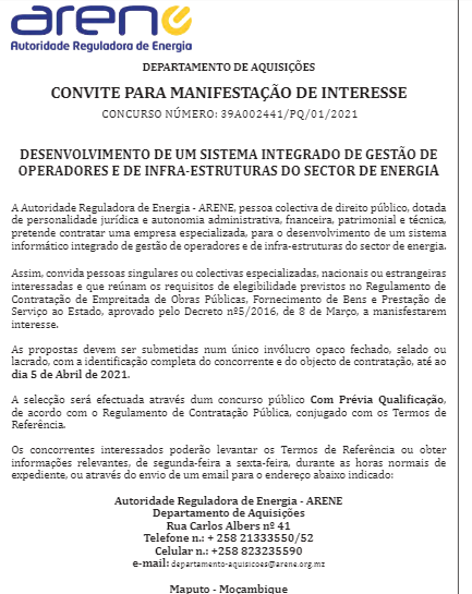 Desenvolvimento de um Sistema Integrado de Gestão De Operadores e de Infraestruturas do Sector de Energia.